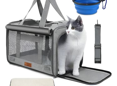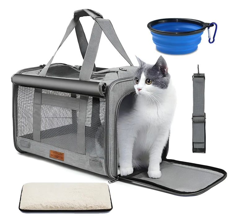 COMPRAR NO MERCADO LIVREBolsa de transporte gatos Viagem Avião C/Almofada e Pote 46×30×30cm Cor Cinza